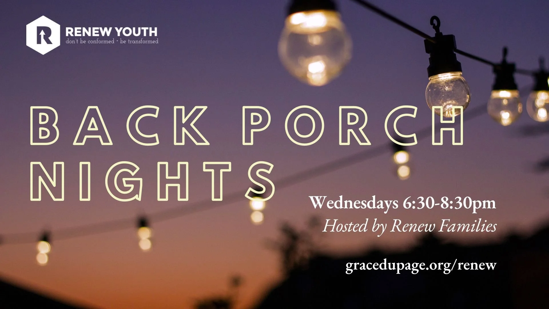 Join us this Summer as RENEW meets in host homes from 6:30pm to 8:30pm on Wednesday evenings, beginning June 11th.