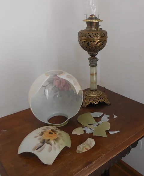 However, that afternoon, I was in the kitchen when I heard a crash—the sound of breaking glass—coming from the family room. I knew Keith was in there, and my first words as I rounded the corner were, “I hope that wasn’t the globe on the antique lamp.” And there he stood: holding the broken globe—speechless!